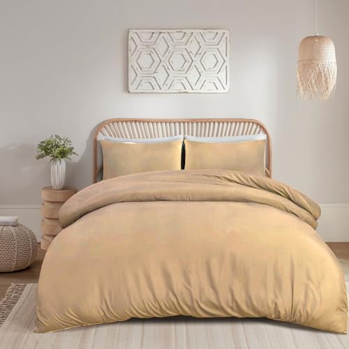 - خامة فاخرة: طقم غطاء لحاف فاخر من مزيج القطن والبوليستر يوفر التوازن المثالي بين الراحة والمتانة لنوم مريح ليلاً