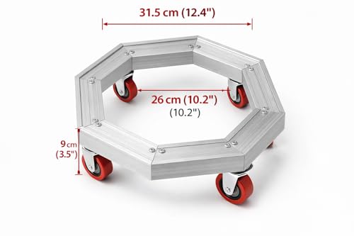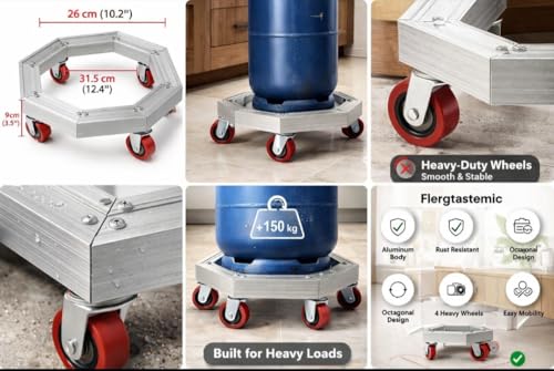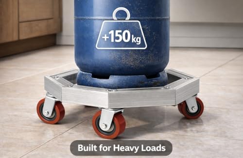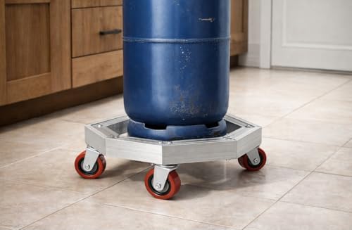 Generic - قاعدة أنبوبة غاز ألومنيوم ثُمانية الأضلاع للأحمال الثقيلة – 4 عجلات قوية – متحركة ومقاومة للصدأ