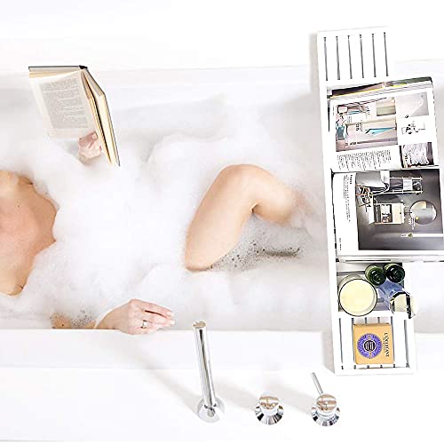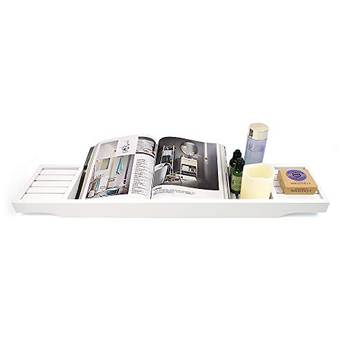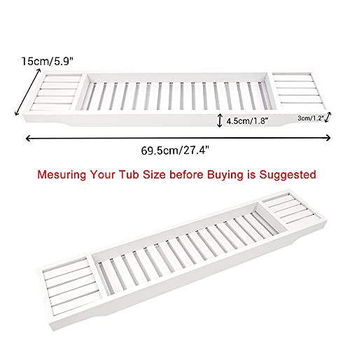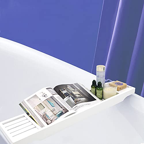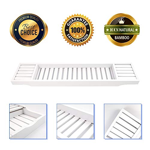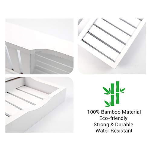 ODEDEN - صينية حوض الاستحمام من الخيزران منظم دش الحمام رف تخزين للحمام لحوض يناسب جميع ملحقات ابيض 27.4 انش × 5.9 1.8 مستطيلي