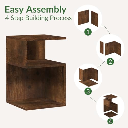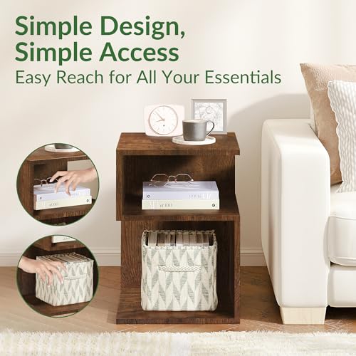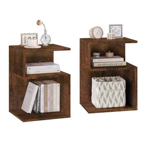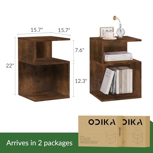ODIKA - طاولة طوكيو اس بتصميم بسيط من 3 طبقات من اوديكا - طاولة جانبية خشبية بسيطة من 3 طبقات للمساحات الصغيرة مع مساحة تخزين مفتوحة - طاولة بجانب السرير مستوحاة من اليابان لغرفة النوم (مجموعة من قطعتين، بني
