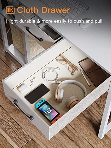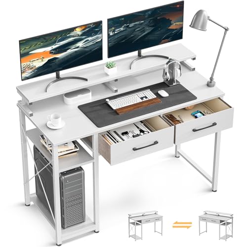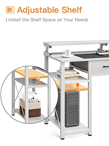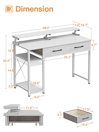 ODK - طاولة كمبيوتر من او دي كيه مقاس 1.016 م: مكتب خشبي بادراج وارفف تخزين، مكتب للكتابة والعمل المنزلي وحامل شاشة كبير المساحة، لون أبيض