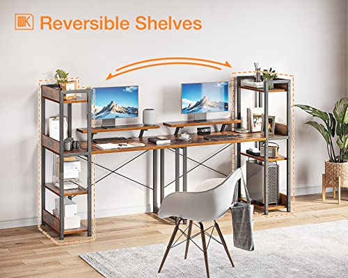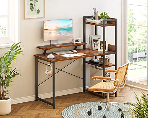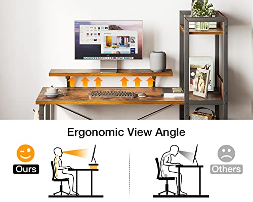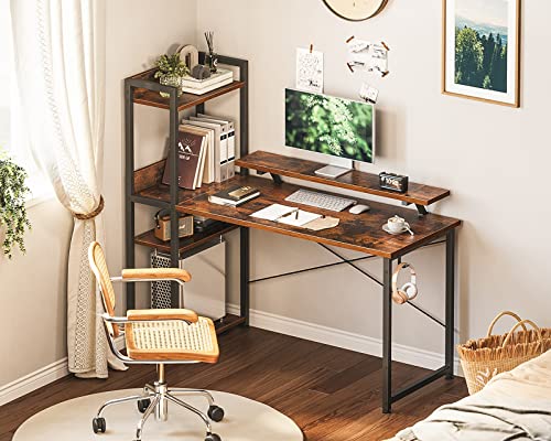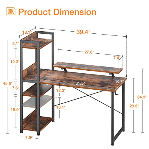ODK - مكتب كمبيوتر مع أرفف تخزين وحامل شاشة من او دي كيه كتابة 1.40 متر رف كتب طاولة دراسة قابلة للعكس للمكتب المنزلي وغرفة النوم والمساحات الصغيرة لون عتيق بني
