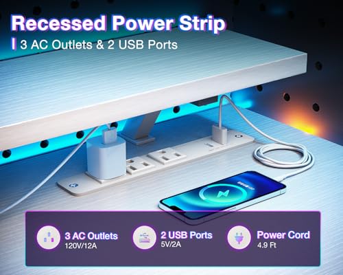 - 【مكتب كمبيوتر مزود بمنافذ طاقة】مكتب الكمبيوتر مزود بـ3 منافذ طاقة، 1 منفذ شحن USB و1 منفذ شحن من النوع سي لأجهزتك الإلكترونية، يمكنك بسهولة وراحة شحن موبايلك الذكي، أو معدات اللعب أو أجهزة البلوتوث عندما تعمل أو تلعب الألعاب.