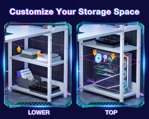 - 【حامل وحدة معالجة مركزية ورف قبل للانعكاس】طاولة العمل مجهزة بحامل وحدة معالجة مركزية ورفوف مفتوحة، مما يمنحك مساحة تخزين كبيرة. الرف الأوسط قابل للإزالة، ويمكن أن يكون رف كتب من طبقتين أو حامل وحدة معالجة مركزية. يمكنك تثبيت الرف على الجانب الأيسر أو الأيمن حسب تفضيلاتك. يمكن للرف المفتوح حمل صندوق التخزين والكتب ومستلزمات الموسيقى وغيرها.