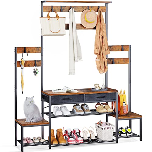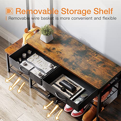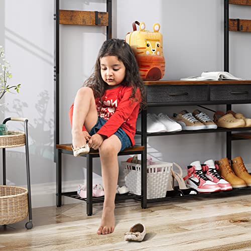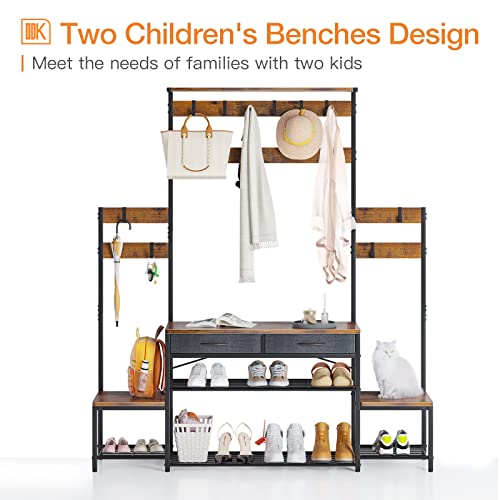 ODK - حامل شجرة للمدخل للوالدين والطفل مع مقعد ومساحة جزامة من او دي كيه رف معطف قائم بذاته أدراج مدخل بإطار معدني وخطافات والبهو وغرفة الخزين بني ريفي