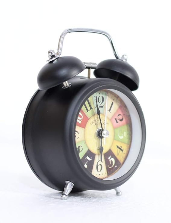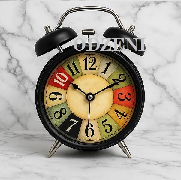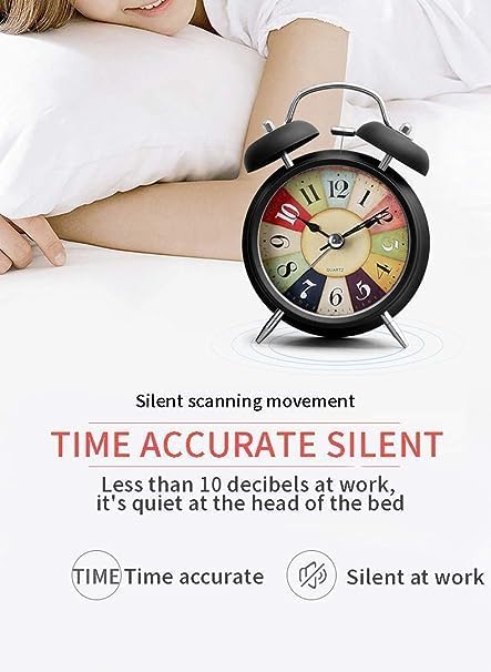 Odzeni - ساعة منبه انالوج كلاسيكية بجرس مزدوج من اودزيني - ساعة طاولة معدنية كلاسيكية مع ضوء ليلي ورنين عالي - مثالية لغرفة النوم او المكتب او الدراسة (اسود)