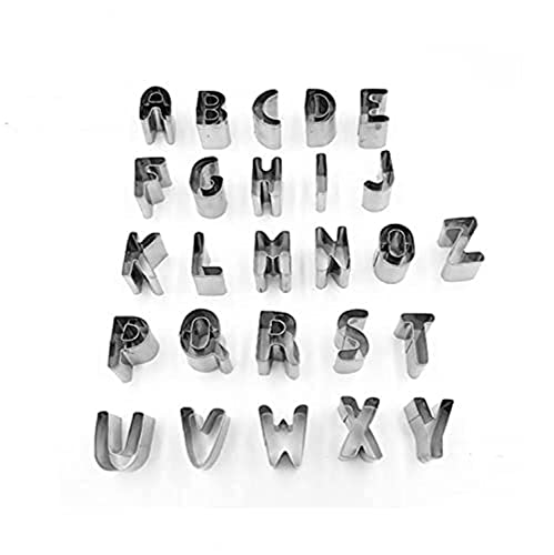 - طقم قطاعات كوكيز - الحروف الإنجليزية - قطاعات من ستانلس ستيل 26 حرف لتشكيل البسكويت والفندان والكيك والفواكه والخضروات والعجين.