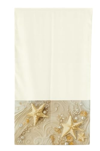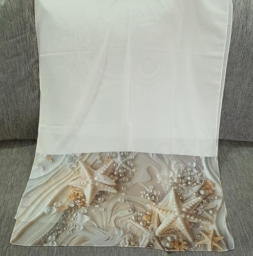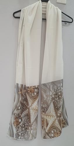 Pretty Spring - سكارف شيفون ناعم بدرجات لون بيج واوف وايت ومرصع باللؤلؤ وأصداف البحر، مقاس 2 متر × 70 سم
