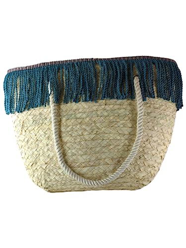 generic - شنطة بحر خوص اوف وايت مزينه بشغل هاند ميد ازرق ، معاصر للبالغين من الجنسين
