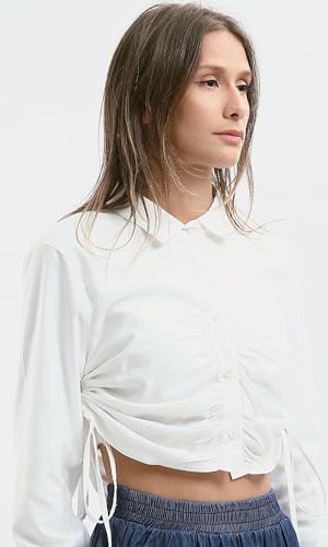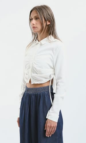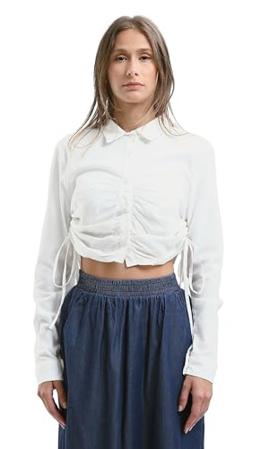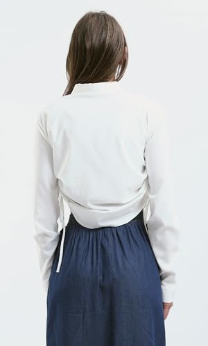Ravin - قميص قصير بأزرار ورباط جانبي بلون اوف وايت