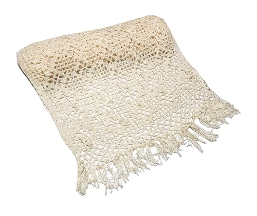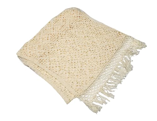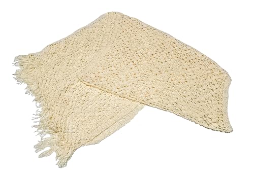 Generic - شال كروشيه طويل مصنوع يدويا بلون اوف وايت، شال كروشيه طويل بصوف اكريلك تركي ناعم