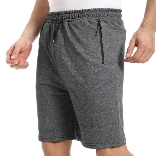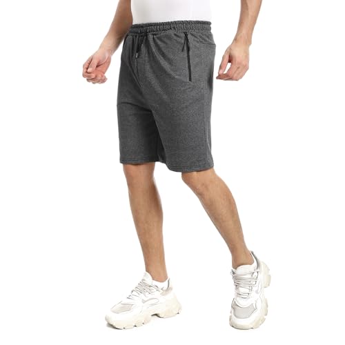 offcliff - Mens Dark Grey Zipped Pockets Plain Shorts summer Melton shorts with zipper