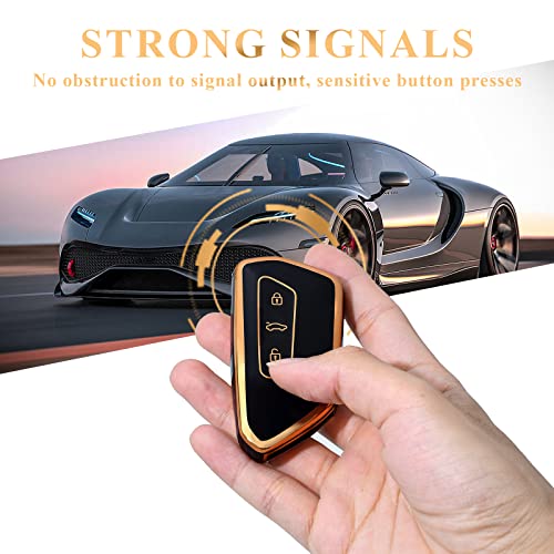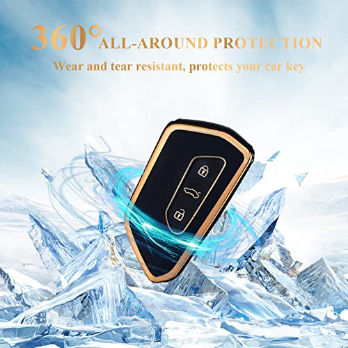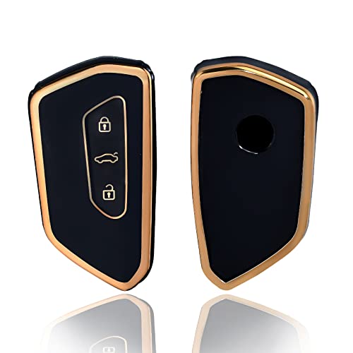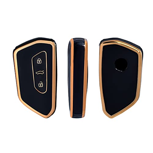 OFFCURVE - اوف كيرف غطاء حماية لمفتاح السيارة بـ3 مفاتيح مناسب لسيارة فولكس فاجن جولف 8 سيات ليون تاراكو اتيكا سكودا اوكتافيا كوبرا فورمينتور بورن، أسود ذهبي، سيليكون