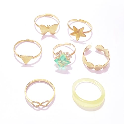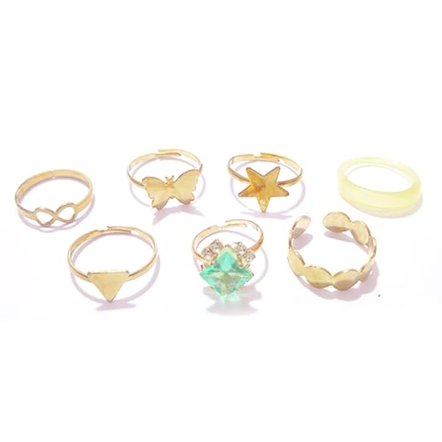 Generic - عرض طقم خاتم مطلي بلون الذهب للنساء - 7 خاتم - شكل 6، 1 طقم