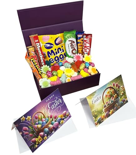 Offer Shop - علبة هدايا بيك ان ميكس للحلويات والشوكولاتة لعيد الفصح | سلة شوكولاتة للحلويات في صندوق مطبوع بنمط خوص | 350 جرام حلويات و13 لوح قياسي