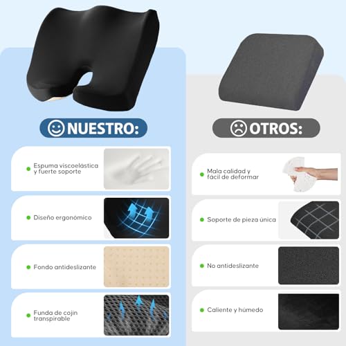 BYCRAY - مخدة لكرسي المكتب من فوم الذاكرة لتقويم عظام أسفل الظهر وعرق النسا مع كيس جيد التهوية وقابل للإزالة بتصميم مريح، مناسبة للمكتب والسيارة والمنزل