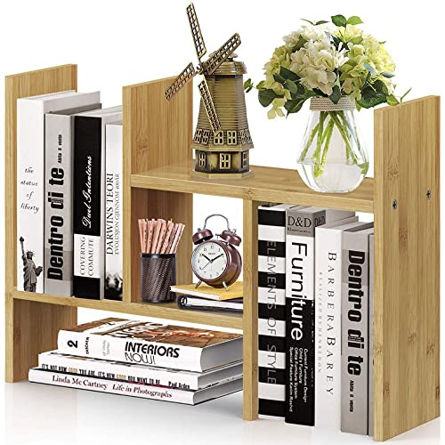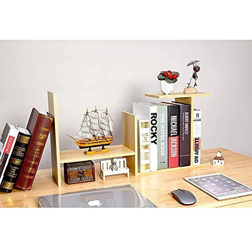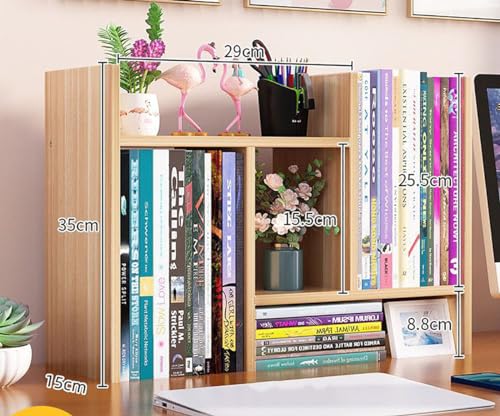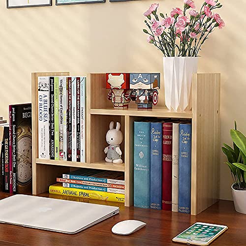 TOMVAES - رف كتب لسطح المكتب قابل للتعديل، رف عرض خشبي كبير، منظم سطح المكتب، رف تخزين لسطح الطاولة، خزانة كتب لمستلزمات المكتب، منظم ملحقات المكتب (خشب الجوز الفاتح)