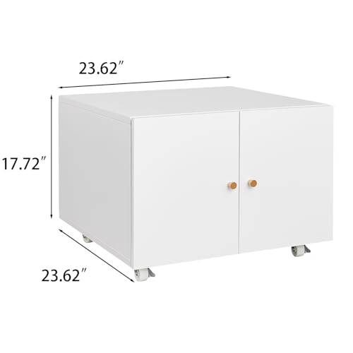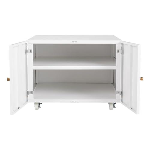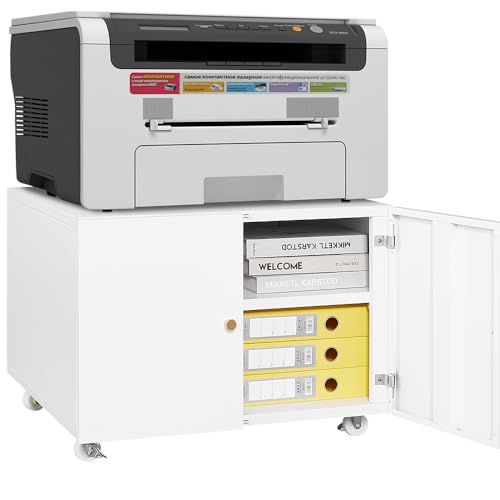 Meibamake - حامل طابعة للأثاث المكتبي موديل B0DRGFYK8B حامل طابعة معدني بارتفاع 45 سم، حامل طابعة ملفات بقاعدة متحركة مع رف قابل للتعديل على عجلات، حامل من الصلب ببابين للمنزل والمكتب (أبيض)
