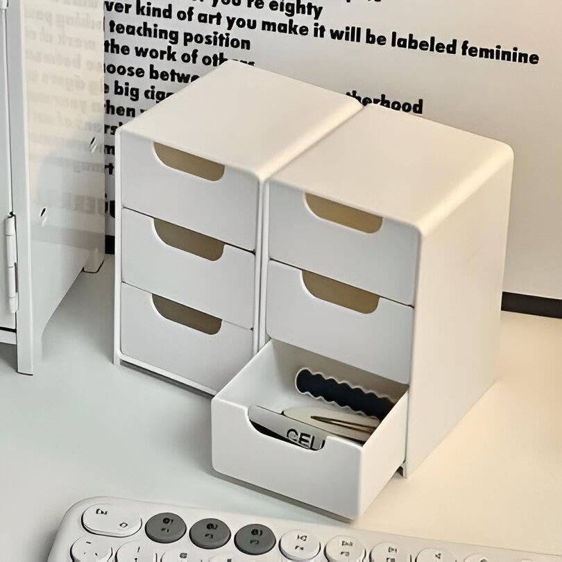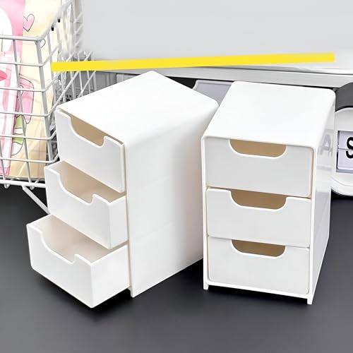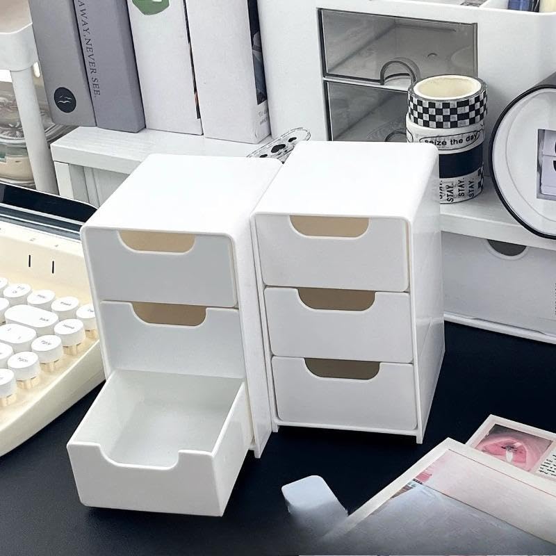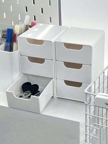 - منظم أبيض عملي من الأكريليك: حل تخزين مثالي لمكتبك أو طاولة الزينة أو أي سطح؛ يبدو الأكريليك الأبيض نظيفًا على الطاولة، وتنزلق الأدراج بسلاسة للوصول السريع.