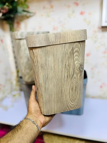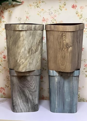Generic - حاوية مخلفات للمكتب - سلة قمامة مربعة مدمجة بتصميم متعدد الألوان يشبه الخشب، مصنوعة من بلاستيك قوي لتدوم طويلا ومناسبة لغرف النوم والديكورات المنزلية الحديثة