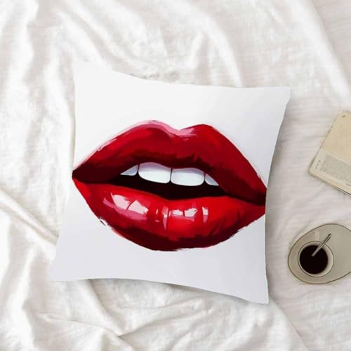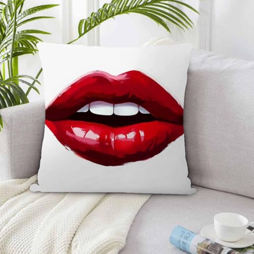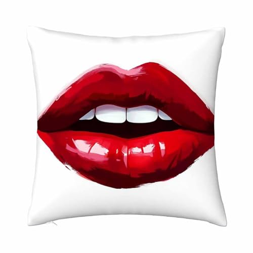 oFloral - كيس مخدة مربع بتصميم شفاه حمراء وعض مثير، للكنبة وغرفة النوم وغرفة المعيشة والسكن الجامعي من او فلورال، 45 × 45 سم، أحمر وأبيض