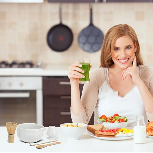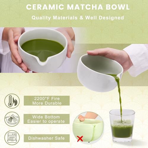- مواد عالية الجودة وتصميم جيد: مصنوع من الفخار الفاخر الذي يتم إطلاقه عند درجة حرارة 2000 درجة فهرنهايت، يضمن وعاء الماتشا الخاص بنا عدم كسره بسهولة ومقاوم للتشقق. تم تصميم الفوهة بدقة من قبل خبير السيراميك لدينا لمنع التدفق الزائد، وضمان التحكم في صب الشاي. علاوة على ذلك، تتميز أوعية ماتشا المحسنة بقاعدة أوسع لتوفير مساحة واسعة للتحريك بسرعة وسلاسة، وتقليل الرذاذ (الحد الأقصى. السعة: 500 مل).