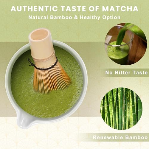 - طعم الماتشا الأصلي: مصنوع يدويًا من الخيزران الذهبي الطبيعي المتجدد مع ما يقرب من 100 خيط دقيق، خفاقات الماتشا الخاصة بنا بلمسة نهائية من الزيت النباتي لتعزيز عمر الخدمة وسهولة التنظيف. استمتع بالنكهة الأصلية للماتشا مع خفاقة الخيزران التقليدية، والتي تقلب مسحوق الماتشا بلطف وبشكل متساوٍ دون مرارة أو طعم معدني.