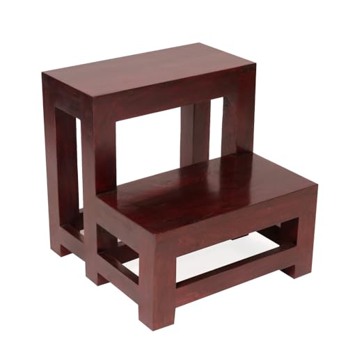 OGESTA - مقعد خشبي بدرجتين من اوجيستا، لمسة نهائية من خشب الماهوجني، تصميم عصري، هيكل صلب، لغرفة النوم والمطبخ والحمام