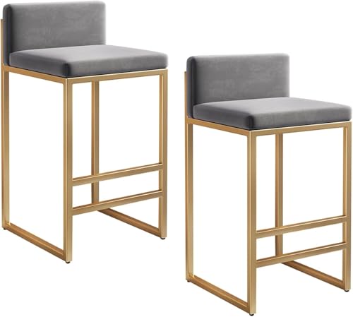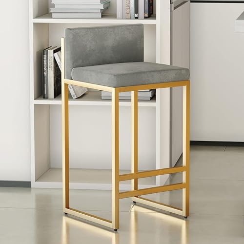 OGFC - مجموعة مقاعد بار عصرية فاخرة من او جي اف سي 28820 - مقاعد بار معدنية للمطبخ مع مسند قدم ذهبي مخملي لغرفة الطعام والمطبخ (المقاس: 75 سم، اللون: رمادي)