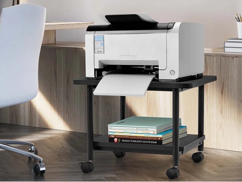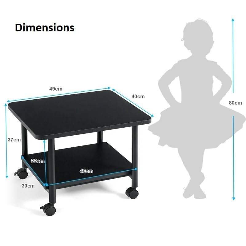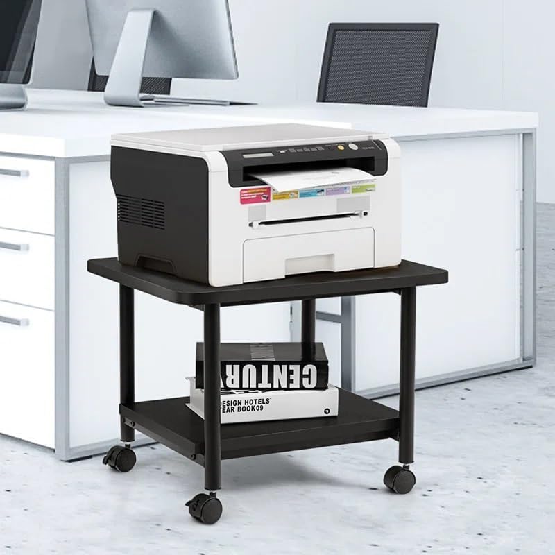 OGFC - حامل طابعة مكتب كلاسيكي موفر للمساحة 35230 من او جي اف سي، ارتفاع 15 انش × عرض 19 انش، سطح اسود مع اطار اسود مع عجلات
