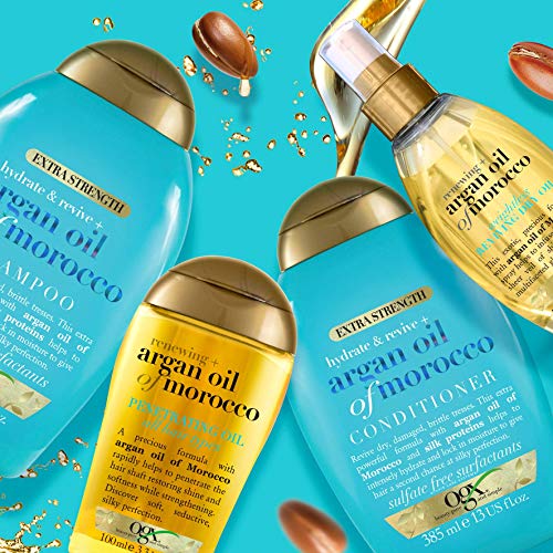 OGX - شامبو وبلسم او جي اكس بقوة اضافية لترطيب وانتعاش الشعر بزيت الارجان المغربي، 385 مل، عبوة من قطعتين