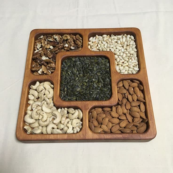 - طبق مقسم للوجبات الخفيفة من الخشب الطبيعي الطبيعي بنسبة 100% بلون طبيعي 100%