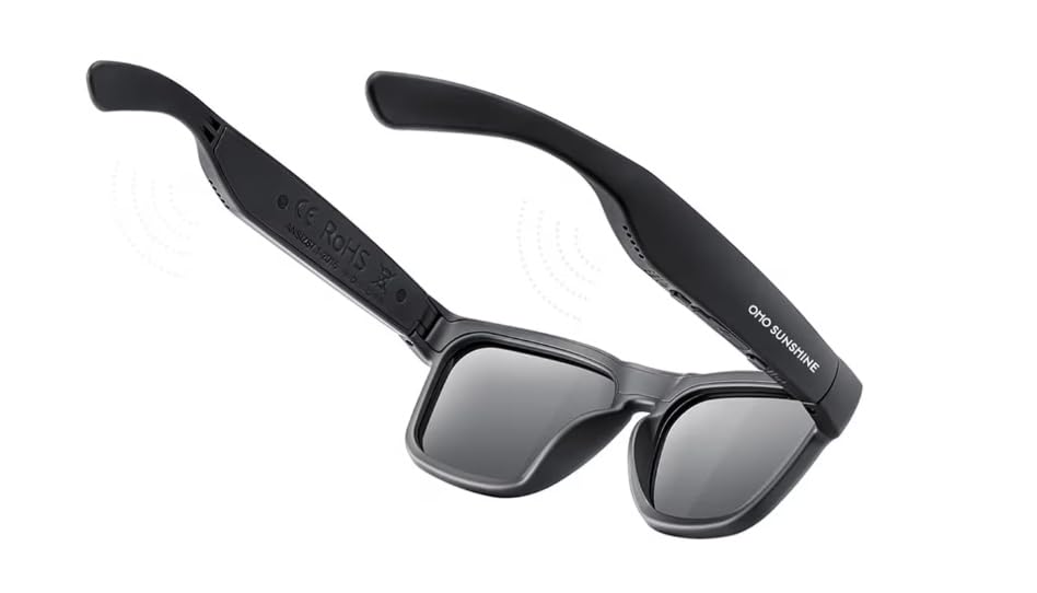 Generic - OHO sunglasses bluetooth نظارات بلوتوث شمسية رياضية، إطار رمادي داكن مع عدسات سوداء، تصميم عصري مريح للرياضة والأنشطة الخارجية
