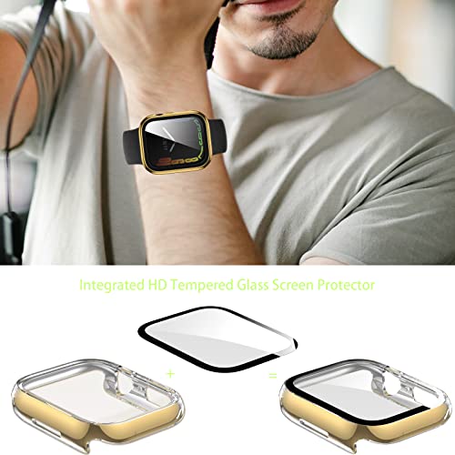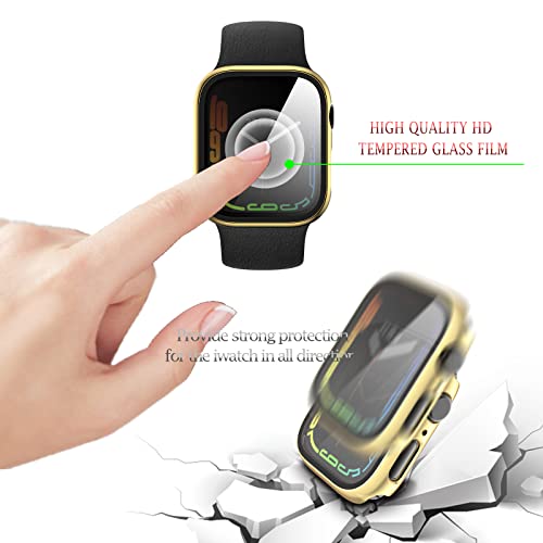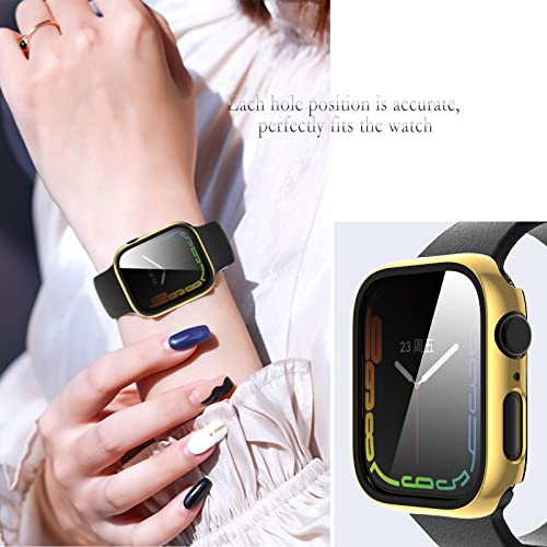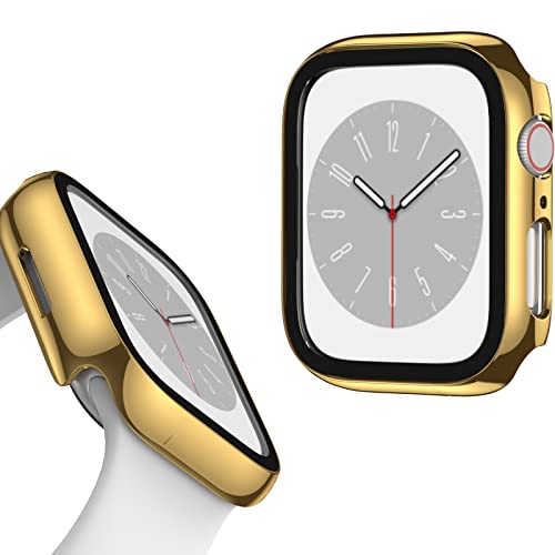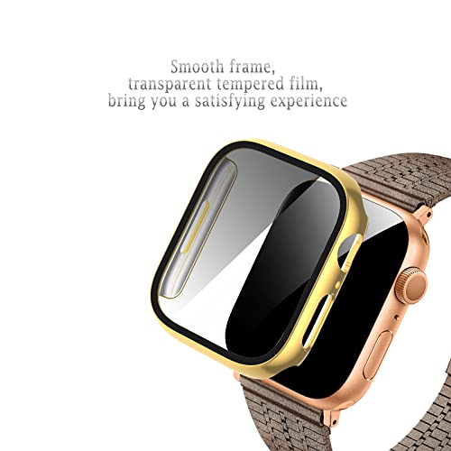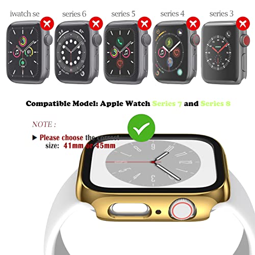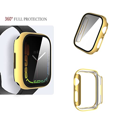 OHPROCS - واقي شاشة كامل بإطار صلب ممتص للصدمات مع حافظة من الزجاج المقوى من اوبروكس لساعة آبل سلسلة 8/7 مقاس 41 ملم و45 ملم (ذهبي، 45 ملم)