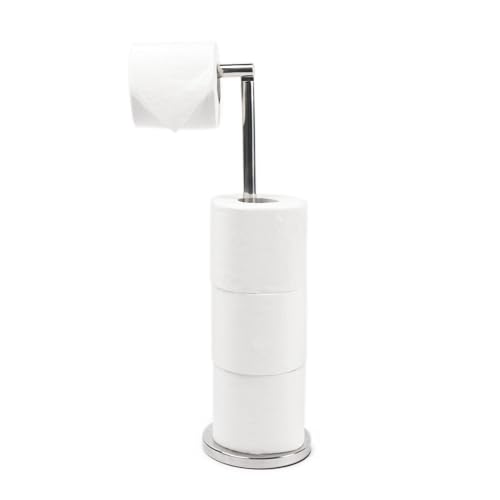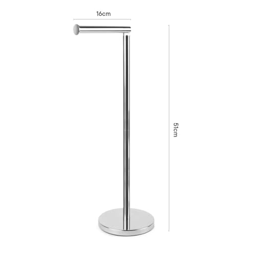 - حامل مناديل المرحاض سهل الطي والاستخدام مع قاعدة ثقيلة لمزيد من الثبات. يضمن حامل بكرة المرحاض القائم بذاته بقاء حمامك مرتبًا ومنظمًا، دون ترك لفات الحمام في كل مكان.