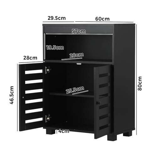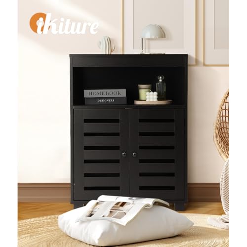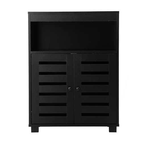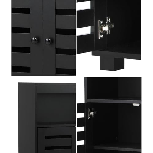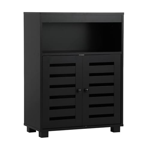 OIKITURE - خزانة بوفيه جانبية لتخزين الاحذية من اويكيتور، خزانة بابواب مسطحة، لون اسود