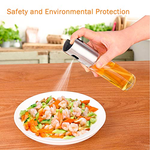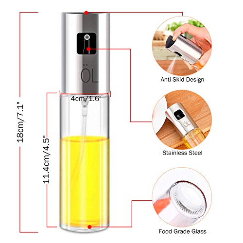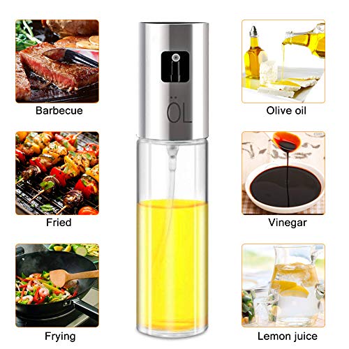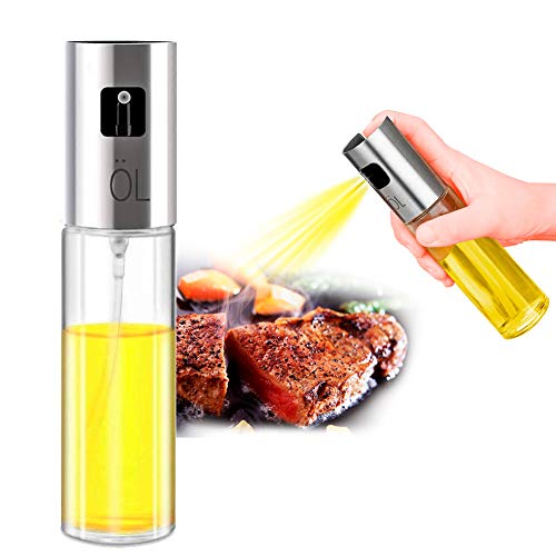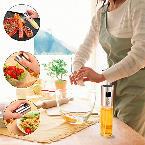 EZESO - موزع بخاخ الزيت للطبخ للزيت والخل زجاجة زيت محمولة من الستانلس ستيل 304 والزجاج للشواء والسلطات والشواء والقلي سعة 100 مل ايزدسو