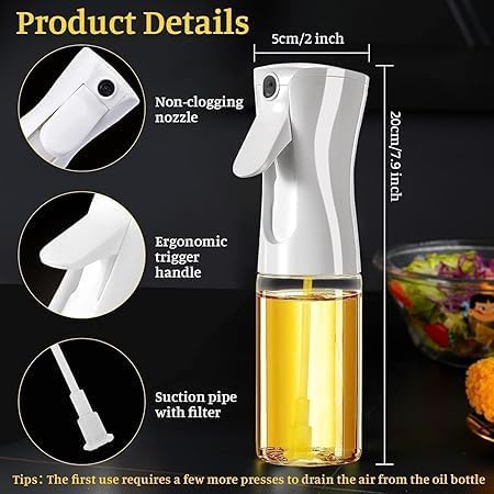 Generic - بخاخ زيت للطبخ، بخاخ زيت زيتون مصنوع من البلاستيك الامن غذائيا وقابلة لاعادة الملئ للمقلاه الهوائية والشواء والخبز في المطبخ والسلطة - ابيض