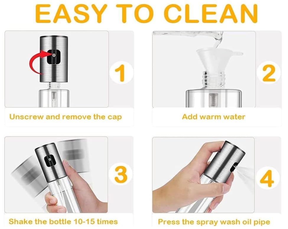 - بخاخ زيت للطبخ من رنا ستور، زجاجة زجاجية، بخاخ زيت الزيتون، زجاجة بخاخ زيت الزيتون، بخاخ زيت الزيتون للسلطة، للشواء في المطبخ، زجاجة قابلة لإعادة الملء 100 مل - فضي