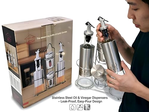 - توفر السعة الكبيرة البالغة 300 مل لكل زجاجة مساحة تخزين واسعة للزيوت أو الخل أو الصلصات المفضلة لديك، مما يقلل من الحاجة إلى إعادة التعبئة المتكررة مع الحفاظ على مساحة صغيرة تتناسب بسلاسة على أسطح الطاولات أو الأرفف.