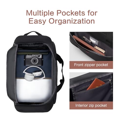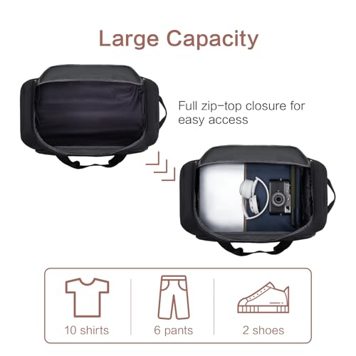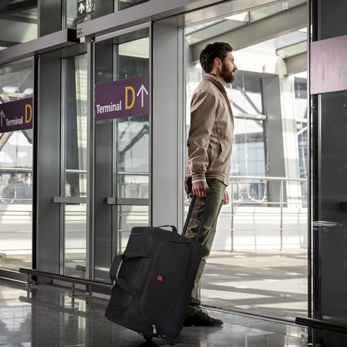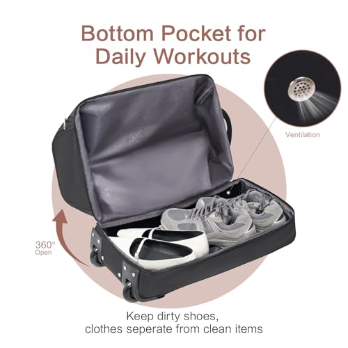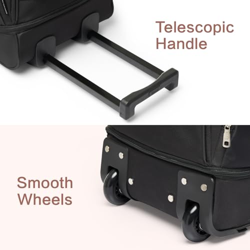 OIWAS - شنطة دافل بسوستة ويدين للحمل بحزام للكتف رياضية محمولة صغيرة بعجلات للسفر وعطلة نهاية الأسبوع قابلة للتوسيع بسعة 50 لتر إلى 60 لتر للنساء والرجال من ويواس، لون أسود