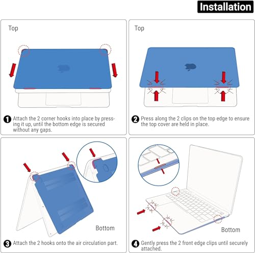 - تحقق من موديل الجهاز الخاص بك: تم تصميم هذه الحافظة خصيصًا لجهاز ماك بوك اير 13 بوصة 2024 و2023 و2022 مع المزود بخاصية تحديد الهوية بالمس تاتش اي دي، طراز: M3 A3113 / M2 A2681.