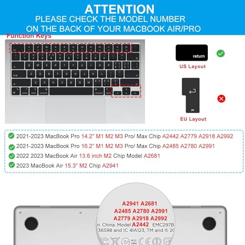 - 【يناسب تمامًا غطاء كيبورد ماك بوك برو 14 انش】- مناسب تمامًا لماك بوك اير 2023 15.3 انش M2 A2941، 2023 2022 ابل ماك بوك اير M2 رقاقة 13.6 موديل A2681 و2023 2022 2021 ابل ماك بوك برو 35.6 سم موديل A2442 A2779 A2918 M3 M2 M1 برو / ماكس تشيب & 2023 2022 2021 ماك بوك برو 16 بوصة موديل A2485 A2780 A2991 M3 M2 M1 برو / شريحة ماكس مع خاصية التعرف باللمس . . غطاء حماية لكيبورد ماك بوك برو 14 انش. ملحقات ماك بوك اير ام 2. يرجى التحقق من طراز ماك بوك الخاص بك لتجنب الشراء بشكل خاطئ!! !