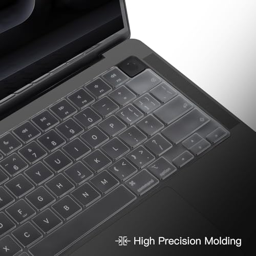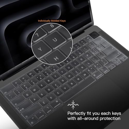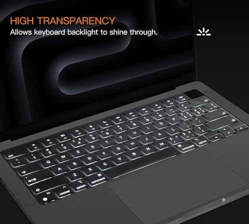 - 【حماية غير مرئية】- سمك مذهل 0.005 انش/0.12 ملم لتقليل تداخل الكتابة. تصميم رفيع للغاية، لن يؤثر على فتح وإغلاق ماك بوك. حافظ على اللمسة الأصلية للجسم من أجلك. طبقة شفافة للغاية تسمح بإضاءة خلفية لوحة المفاتيح من خلالها، مما يحافظ على أناقة جهاز ماك بوك الخاص بك.