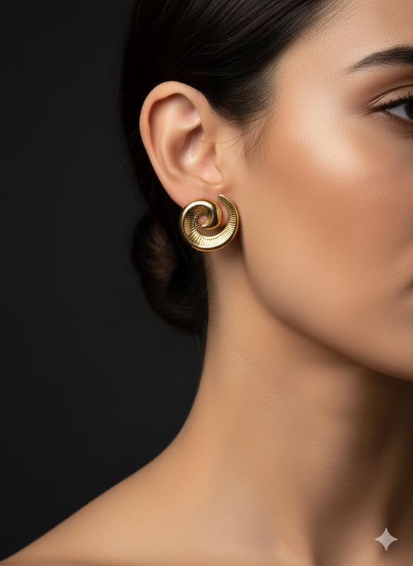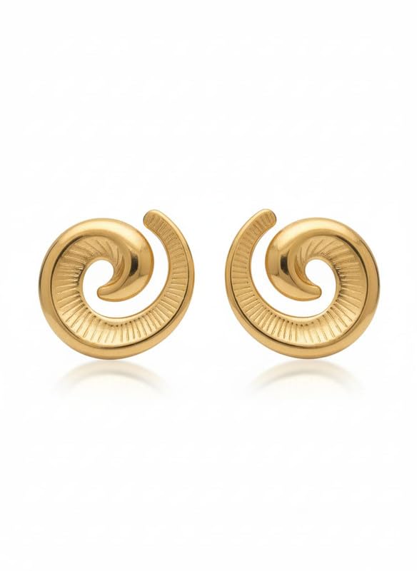 OKAN - حلقان بتصميم فيونكة للنساء من اوكان، مقاس متوسط، لون ذهبي (ra274)