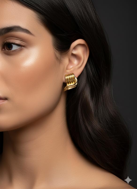 OKAN - اوكان اقراط فيونكة للنساء، مقاس M، لون ذهبي (ra298)