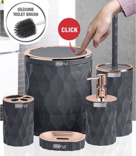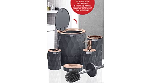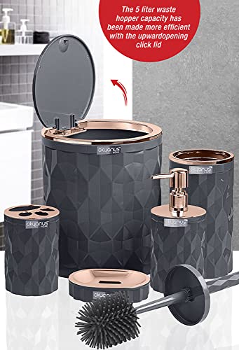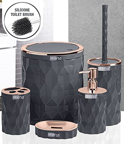 okyanus home - طقم حمام دايموند اوشينيك للمنزل من اوكايانوس مكون من 5 قطع - نحاسي × رمادي، بلاستيك