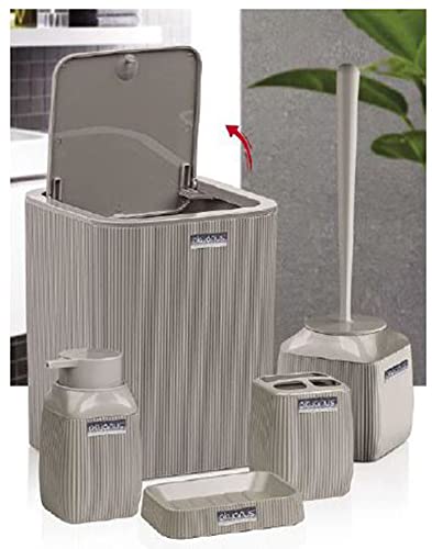 okyanus home - طقم حمام اوكيانوس هوم 5 قطع اوشنوس مربع مخطط - بني