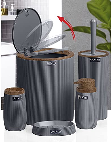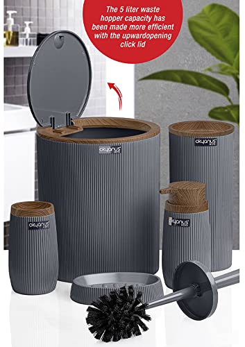 okyanus home - طقم حمام منزلي من اوكيانوس مكون من 5 قطع، تصميم دائري، مخطط، لون خشبي - رمادي