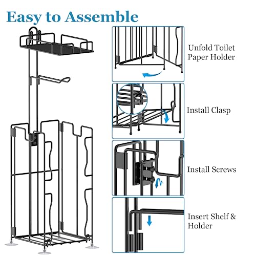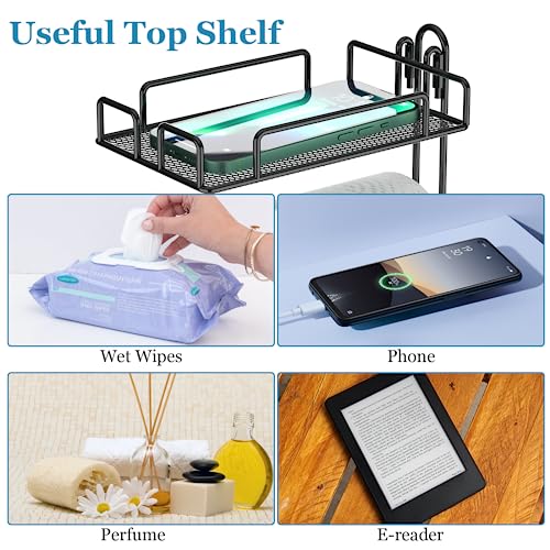 - حامل ورق التواليت 3 في 1: يجمع حامل ورق التواليت هذا مع الرف بين حامل ورق المرحاض المثبت على الحائط وتخزين ورق المرحاض ورف إضافي للهاتف المحمول أو المناديل المبللة أو المطهرات في حامل 3 في 1 كل ما تحتاجه في مكان واحد